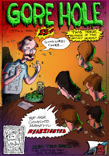 Fantastic! OK. All this week I'll be cutting it up for PDF. You guys may want to take a pass at the descriptive text for the tagline of the book between now and it's premiere. This is going to be fun. Spending about 10 bucks and getting all these old sketches in a nicer package than we ever dreamed they be in. And soon as well. My book has supposedly already shipped. Maybe we could do ads. "What kind of man reads GoreHole?"
